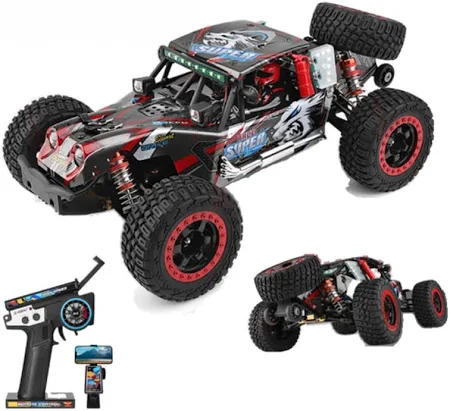 - Modelo: WLtoys 124028 Coche buggy de carreras 4×4 eléctrico a escala 1/12Velocidad máxima: 60 km/h